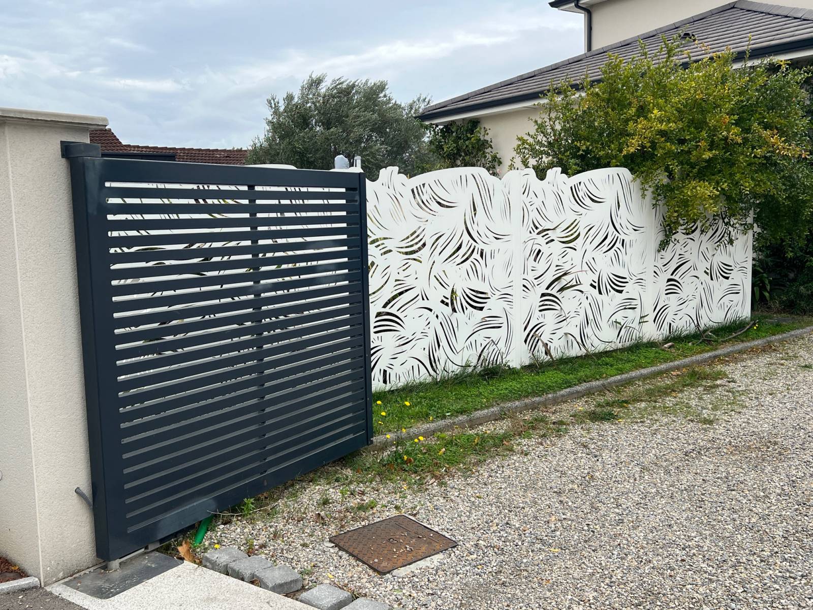 - Fourniture et pose d'un pare-vue décoratif pour limiter l'espace entrée de la maison avec l'espace de vie extérieure (piscine et terrasse)